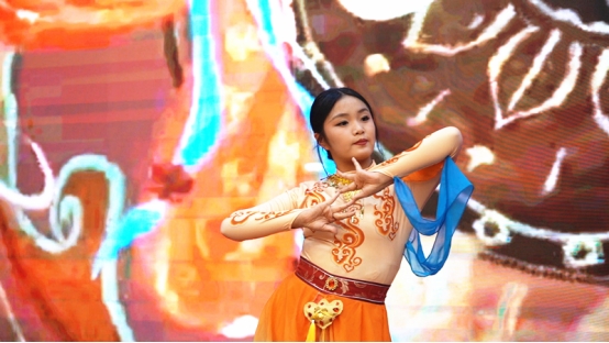 舞台上,歌舞、乐器、武术等精彩表演百花齐放。红石榴舞蹈队《美丽家园》舞姿翩跹,金胡杨民乐团《红花遍地开》乐声悠扬,阳光家园合唱团以一曲《国家》唱出对祖国的赤诚,62岁的张杰用刚柔并济的太极拳传递“武术强身”的理念,孙墨涵小朋友的街舞表演用动感节奏展现青春活力……