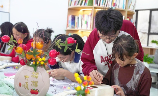 在尤克里里DIY创作环节,专业老师讲解绘制技巧后,居民们迫不及待拿起画笔,围绕“石榴元素”与“民族特色花纹”展开创作:有的勾勒出饱满的“多籽石榴”,象征各族群众像石榴籽一样紧紧相拥;有的以维吾尔族艾德莱斯花纹为灵感,用明艳的色彩描绘文化图腾;还有的将哈萨克族毡房纹样融入设计,小小琴身成了民族文化的“展示台”。
