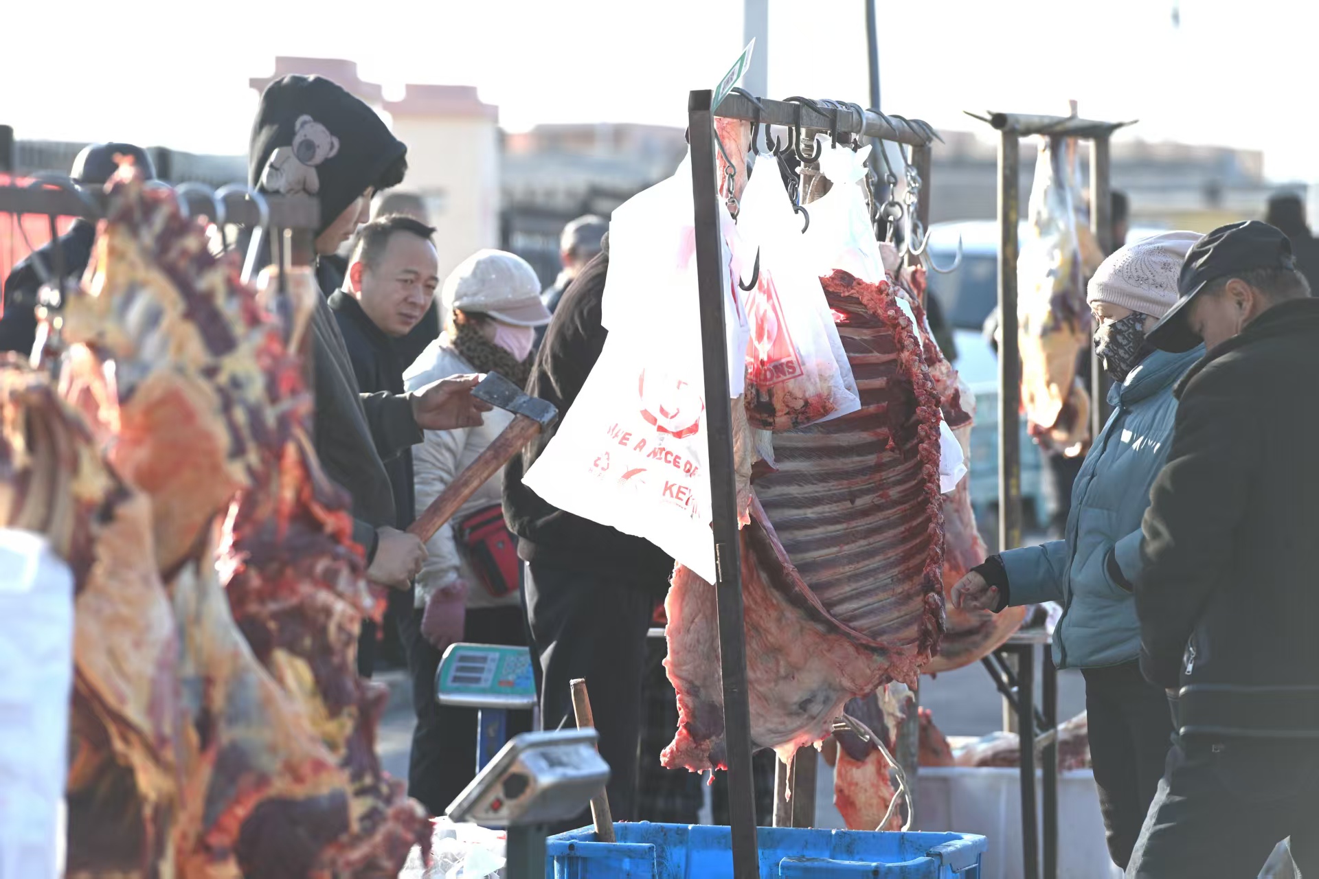 贯穿全天的“风物市集”上,作为冬宰节“灵魂美食”的马肠子摊位人气最旺。刚灌制的马肠子肥瘦相间、油光锃亮,牧民哈再孜·哈瓦斯一边为游客切肉品尝,一边自豪介绍:“我们自家养殖的马,以传统工艺腌制,煮出来香得很!”有着16年马肠子制作经验的他,借助冬宰节活动积累了大批客户,月销量最高可达两吨,年收入超十万元,还带动村民共同参与熏马肠制作,携手增收致富。