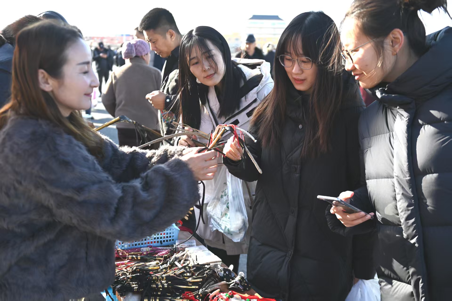 经开区网讯(文图/薛霁彤郭昌龙)“新鲜马肠子嘞!香的很!”11月21日,乌鲁木齐经济技术开发区(头屯河区)西湖街道东南沟村冬宰文化节暨乡村文旅商贸嘉年华热闹启幕。60余个牧民摊位一字排开,吆喝声与欢笑声交织回荡,刺绣文创、特色奶制品、传统马肠子等好物供不应求,一场以节为媒的商贸热潮,让村民的“钱袋子”越鼓越实。