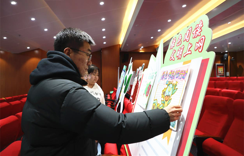 除了舞台表演,现场还设置主题展区,集中展出2025年度“绿书签”主题宣传品,以及学生们创作的绘画、手抄报、书法等“护苗”主题手工作品。学生们纷纷在“争做文明小卫士”签名墙上签名并承诺自觉抵制盗版、文明绿色上网。