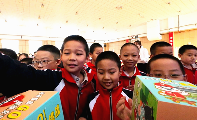 市第123小学的学生们踊跃领取文明盲盒