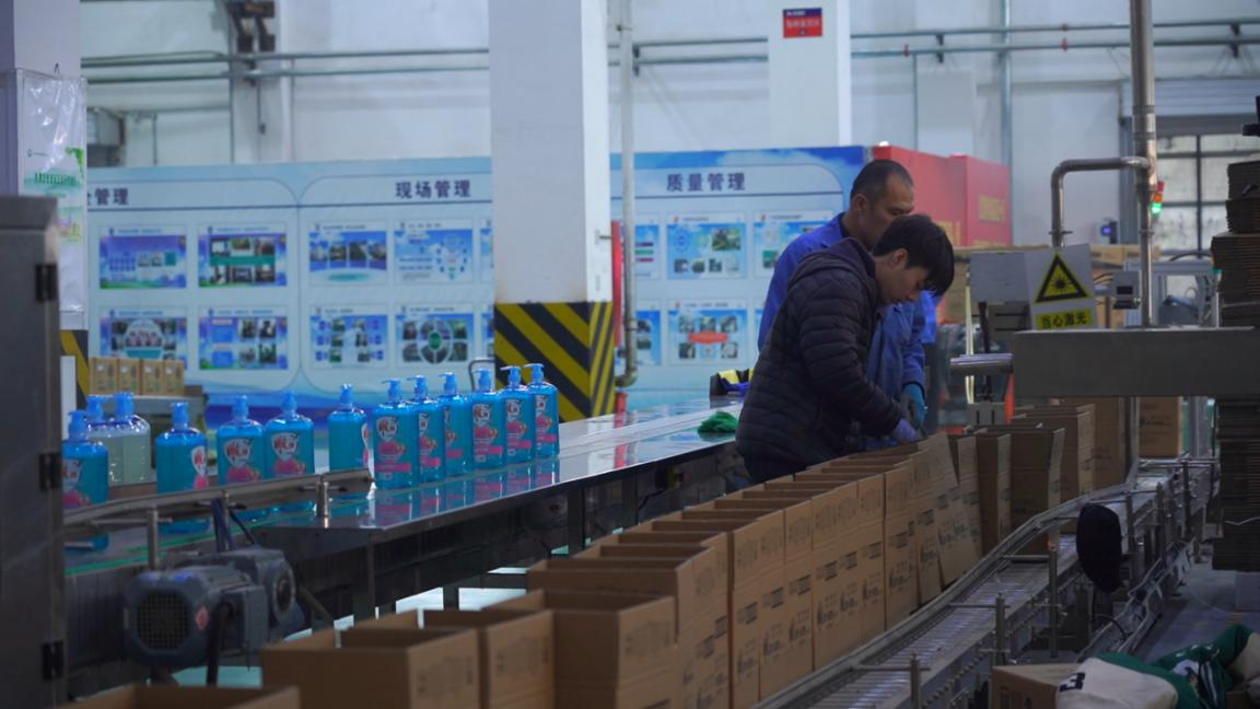 工作人员正在灌装洗洁精