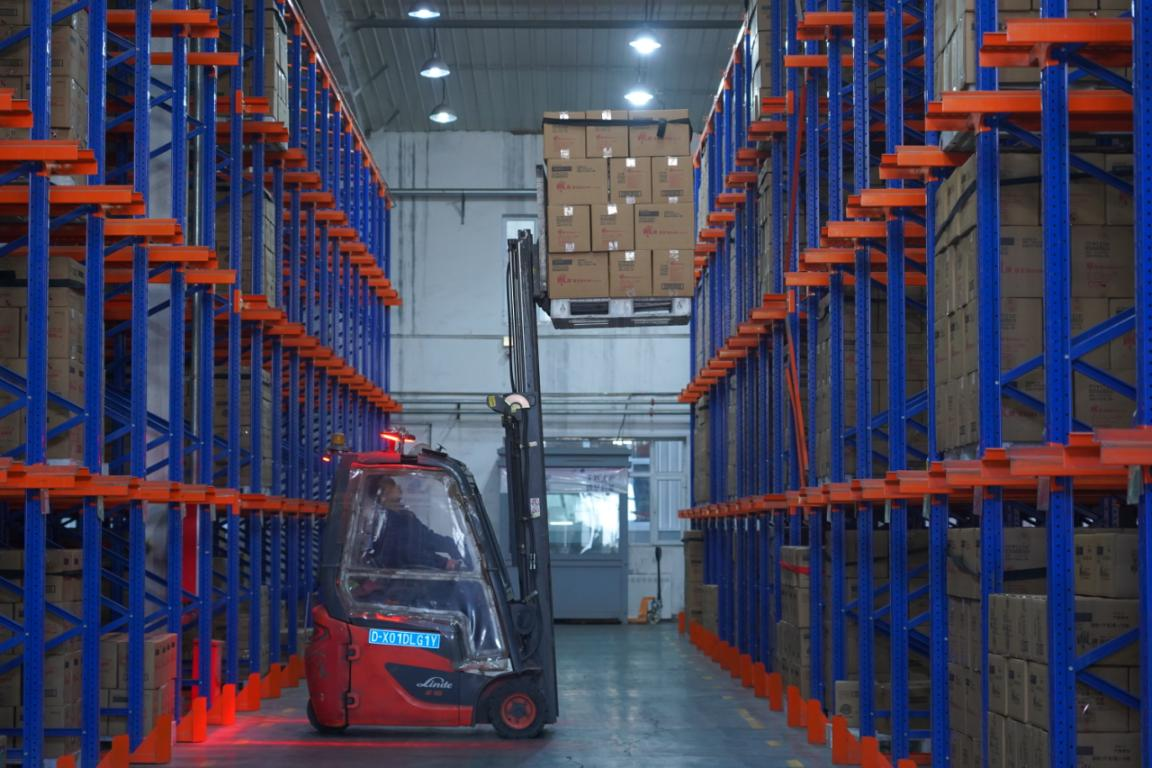 工作人员正在使用叉车搬运货品