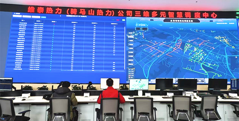 在新疆维泰热力股份有限公司的三维多元智慧调度中心,供热监管平台实时监测管网温度、压力等数据,工作人员通过精准调控,保障供热系统高效运转。