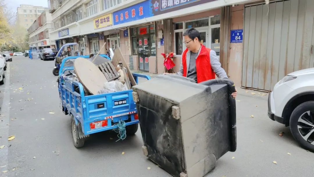 尚北社区对辖区进行环境卫生大清理,将上海路88号门前绿化带中的破旧沙发、桌椅等大件废弃物清理干净,让环境恢复整洁。