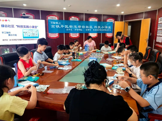 青少年在科技小课堂上制作科技手工品