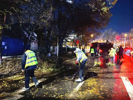 经过作业人员数小时连续奋战,截至11月6日傍晚,辖区内所有断枝切割工作基本完成,成功保障晚高峰时段道路通行顺畅,为市民出行筑牢“安全通道”。为乘势推进清障收尾,确保11月7日居民生产生活秩序全面恢复,经开区(头区)园林管理局迅速统筹,联合消防救援大队、相关街道办事处及多家企业,在中亚南路街道召开应急清障现场部署会,明确分工、整合资源,启动“连夜作战模式”,全面清除道路堆积的断枝垃圾。