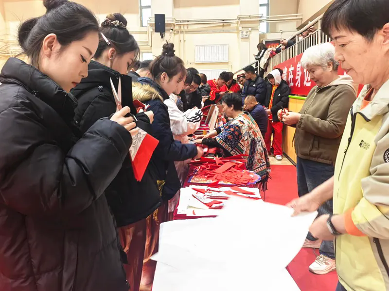除了文艺表演,活动还设置了民俗文化展区、非遗文化展示体验区,特邀兵团第十二师非遗传承人现场展示剪纸、皮影戏、拓印等传统技艺。观众们纷纷驻足欣赏,踊跃参与互动,在传承人的指导下亲手制作手工艺品,零距离感受非遗文化的独特韵味。同时,中高职院校艺术社团带来的非遗主题创新作品,让传统文化焕发出青春活力。