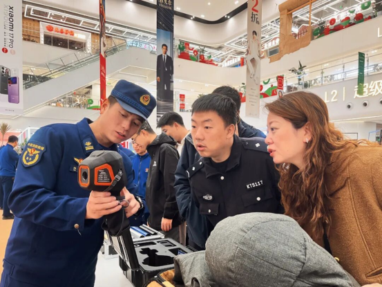 北站西路街道北站路北社区联合北站路消防救援站在砂之船(乌鲁木齐)奥莱开展“11·9”消防安全知识普及活动,工作人员现场为市民讲解火灾预防、初期火情处置、安全疏散逃生等知识。图/朱梦莹