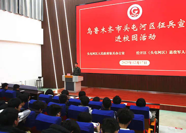 经开区网讯(文图/郭昌龙通讯员张鹏真)为扎实做好2026年征兵宣传工作,进一步激发青年学子参军报国热情,近日,乌鲁木齐经济技术开发区(头屯河区)退役军人事务局联合头屯河区人民武装部,先后走进新疆现代职业技术学院、新疆工程学院,开展“热血青春献国防·携笔从戎正当时”主题征兵宣讲暨国防教育活动。