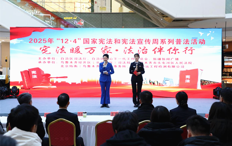 经开区网讯(文图/陈龙)为弘扬宪法精神,推动法治建设融入基层、浸润人心,近日,乌鲁木齐经济技术开发区(头屯河区)司法局在经开万达广场举办2025年“宪法宣传周”启动仪式暨“普法集市”活动,以群众喜闻乐见的形式搭建学法平台,让严肃法律知识变得鲜活可感。