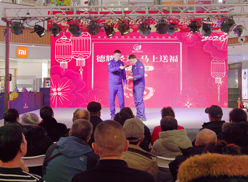 在“模范开讲啦”环节,乌鲁木齐市道德模范、莲湖路消防救援站站长李建伟以“我最难忘的一次守护”为题,分享了他和团队守护群众生命财产安全的感人故事。朴实的话语传递出道德模范的责任与担当,深深打动在场听众。随后,李建伟道德模范工作室和乌鲁木齐市眼耳鼻喉专科医院公益团队共同为市民代表送上“健康福”与“安全福”,将新春祝福与暖心关怀送到群众手中。