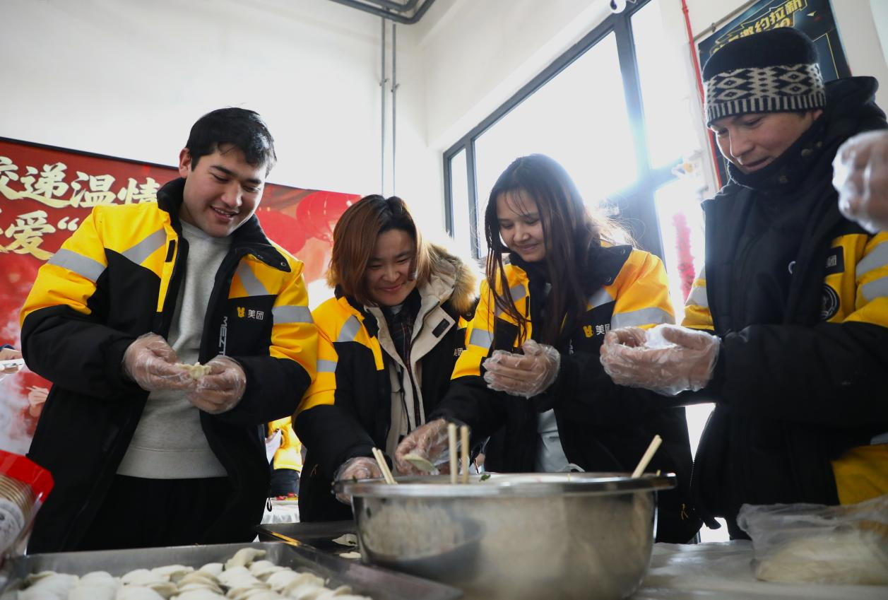经开区网讯(文图/陈龙)2月11日,乌鲁木齐经济技术开发区(头屯河区)工会驿站·智联优可高铁站内暖意融融、欢声笑语,“暖‘新’迎新春·饺子暖人心”美团外卖骑手小年暖心团圆活动在此温情举办。