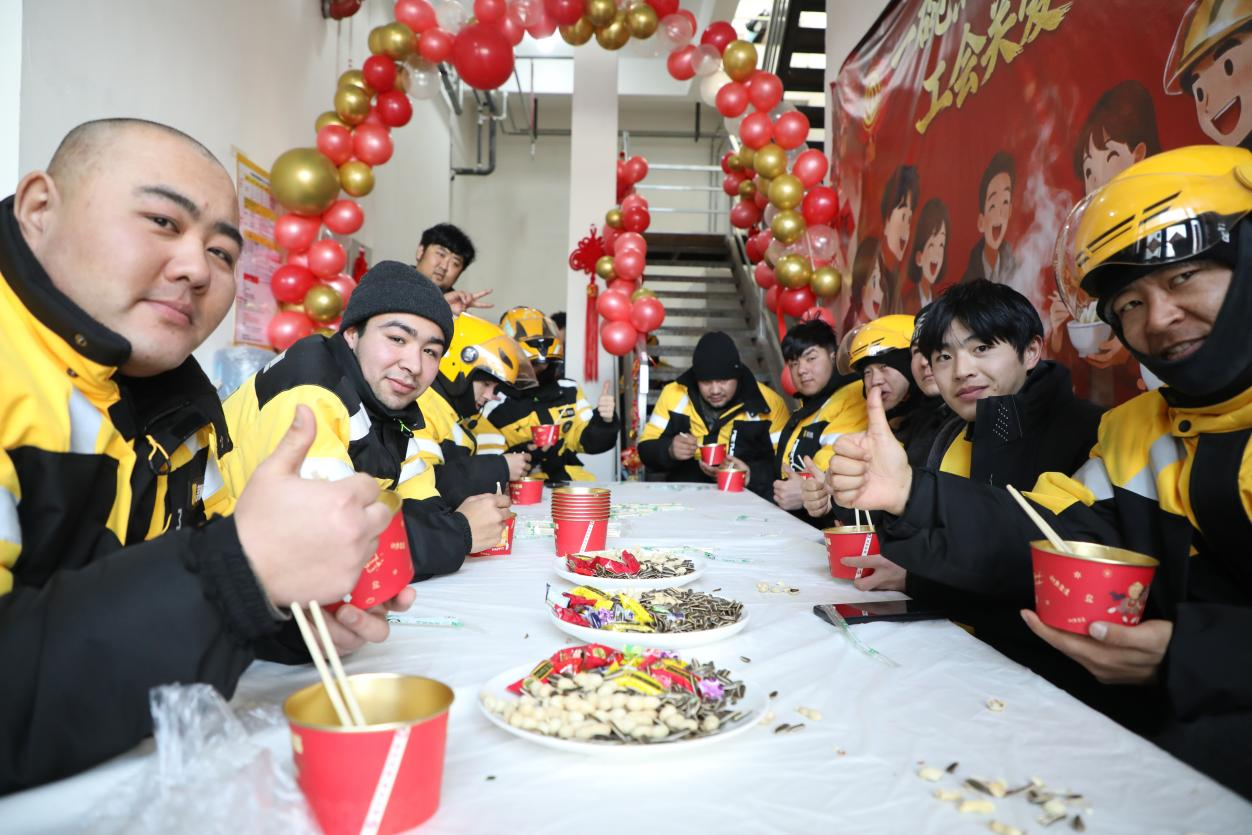 “平时都是给别人送餐,今天有人给我们包饺子、送福字,心里暖烘烘的,特别感动。”老家在江西的外卖骑手洪德超吃着甜馅饺子,眉眼间满是笑意,“小年能在驿站吃上这顿团圆饺,就像回到了自己家一样踏实、亲切。”