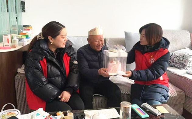 以关爱高龄老人为切入点,社区“红管家”们特意摸排了辖区内春节期间过生日的高龄老人,统一购置生日蛋糕,由队员上门祝贺,让老人们在喜庆团圆的节日里感受到来自社区大家庭的浓浓暖意。