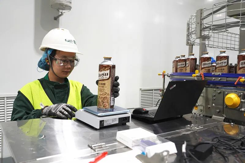 记者在车间看到,全新自动化生产线高效运转,空罐依次完成清洗、灌装、封盖、质检、装箱等全流程自动化作业,整个生产环节顺畅、高效、智能。