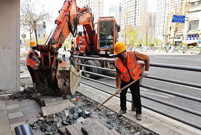 4月16日,在经开万达金街附近路段,施工人员手持铁锹,配合小型挖掘机开挖管线沟槽。不远处,几根黑色电线凌乱地垂挂在路灯杆旁,距地面不足3米。“这里人流量大,线缆杂乱既不安全也影响商圈形象。”新疆维泰开发建设(集团)股份有限公司市政项目部负责人王国森介绍,此次整治将铺设地下管道,把架空飞线全部引入管沟,并拆除废弃空中线缆,预计5月中旬完成该片区整治,让商圈上空变得清爽通透。