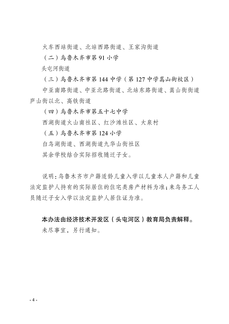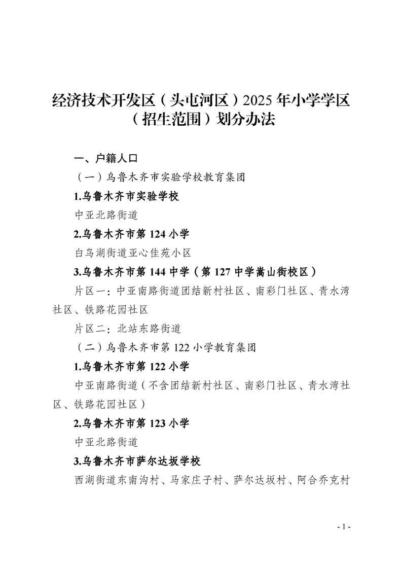 经济技术开发区(头屯河区)2025年小学学区(招生范围)划分办法